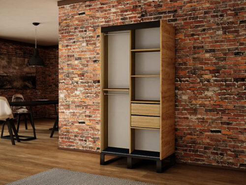 ארון בגדים 2 דלתות ומגירות אלון פשתן – עיצוב מודרני