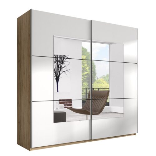 ארון הזזה עץ אלון בשילוב לבן דגם 150 Flex