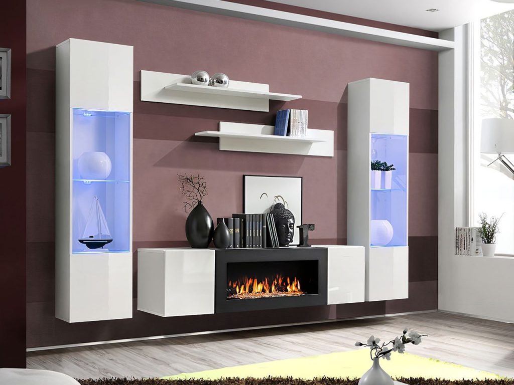 מזנון קיר מודרני עם קמין – עיצוב חדשני לטלוויזיה