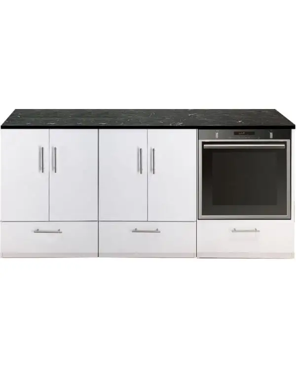 יחידת המטבח ברוחב 180 ס"מ מאפשרת התקנת קולט אדים, כיריים עצמאיות וכיור עם שתי קערות. אתה יכול למקם אותו כיחידה עצמאית במטבח קטן, אבל אתה יכול גם להרחיב אותו בקלות עם מודולים נוספים מאותה אוסף.