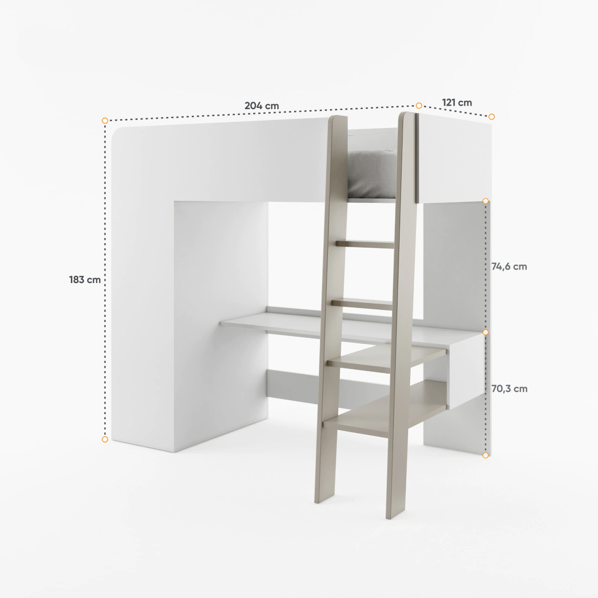 "מיטת גלריה 90x200 עם שולחן כתיבה – עיצוב חסכוני במקום"
