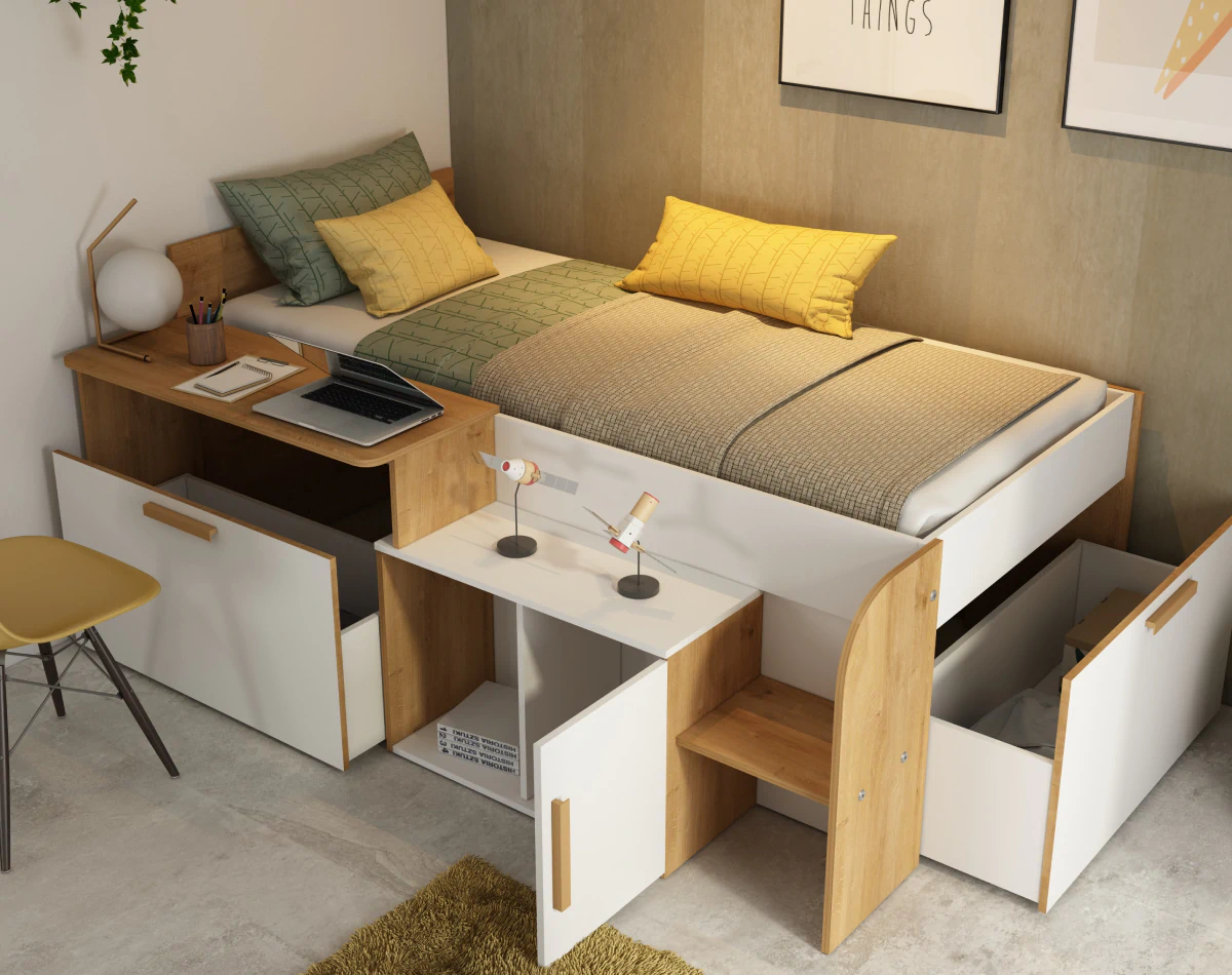 "מיטה חד-מיטה עם שולחן עבודה מובנה – עיצוב דו-צדדי"