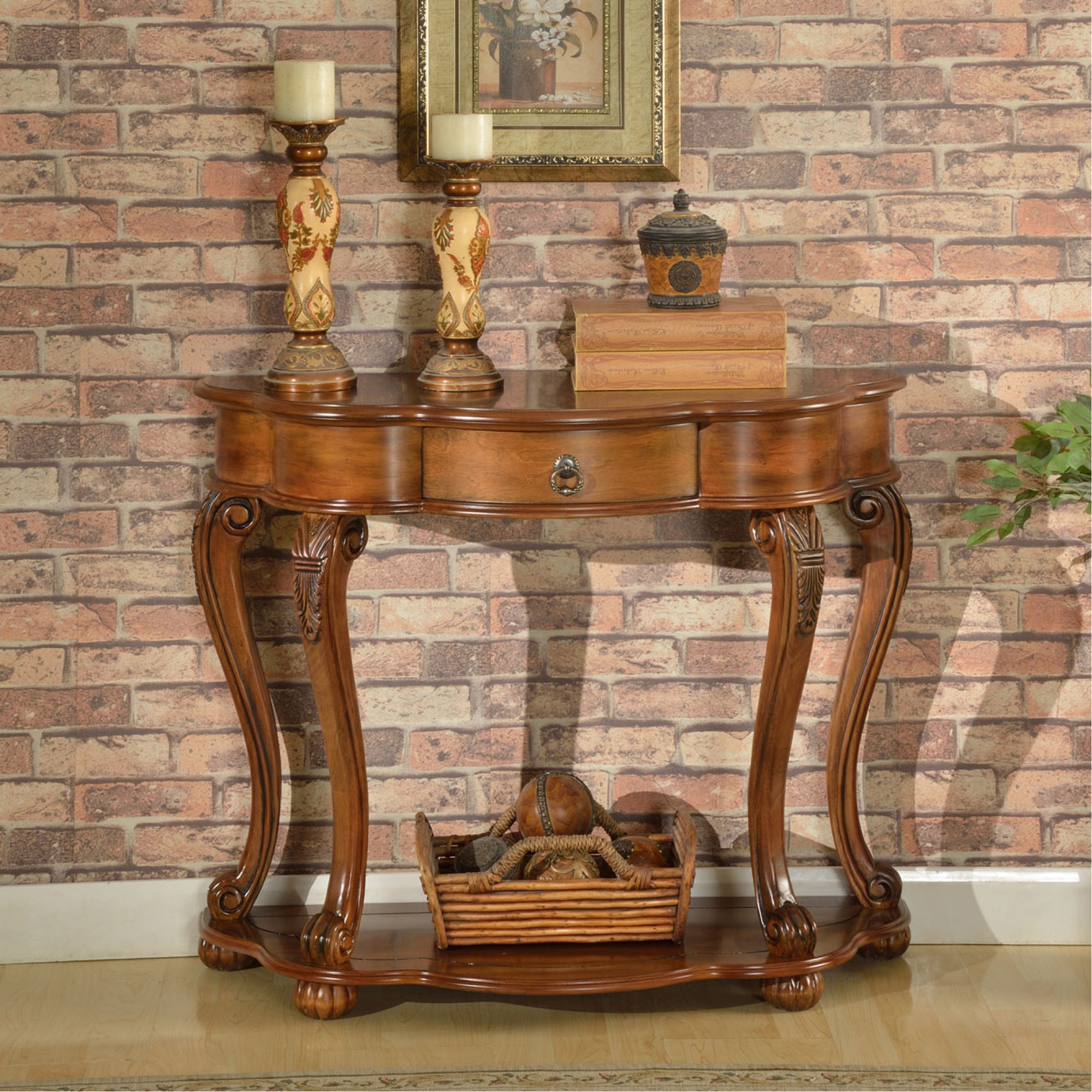 ✔️ קונסולת עץ קלאסית עם מדף ומגירה: קונסולה מעוצבת בסגנון קלאסי הכוללת מדף תחתון ומגירה מעץ, המציעים אחסון נוסף ונוחות 🏡