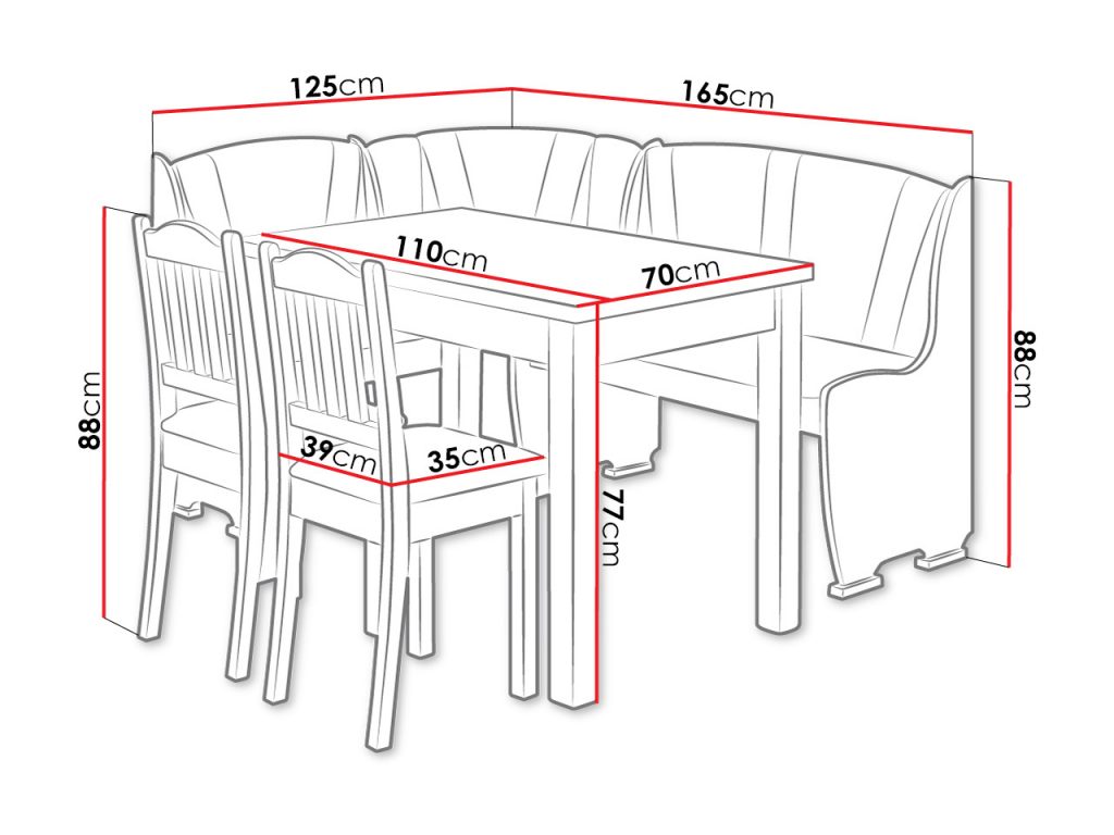 - שולחן: אורך: 110 ס"מ, רוחב: 70 ס"מ, גובה: 77 ס"מ,