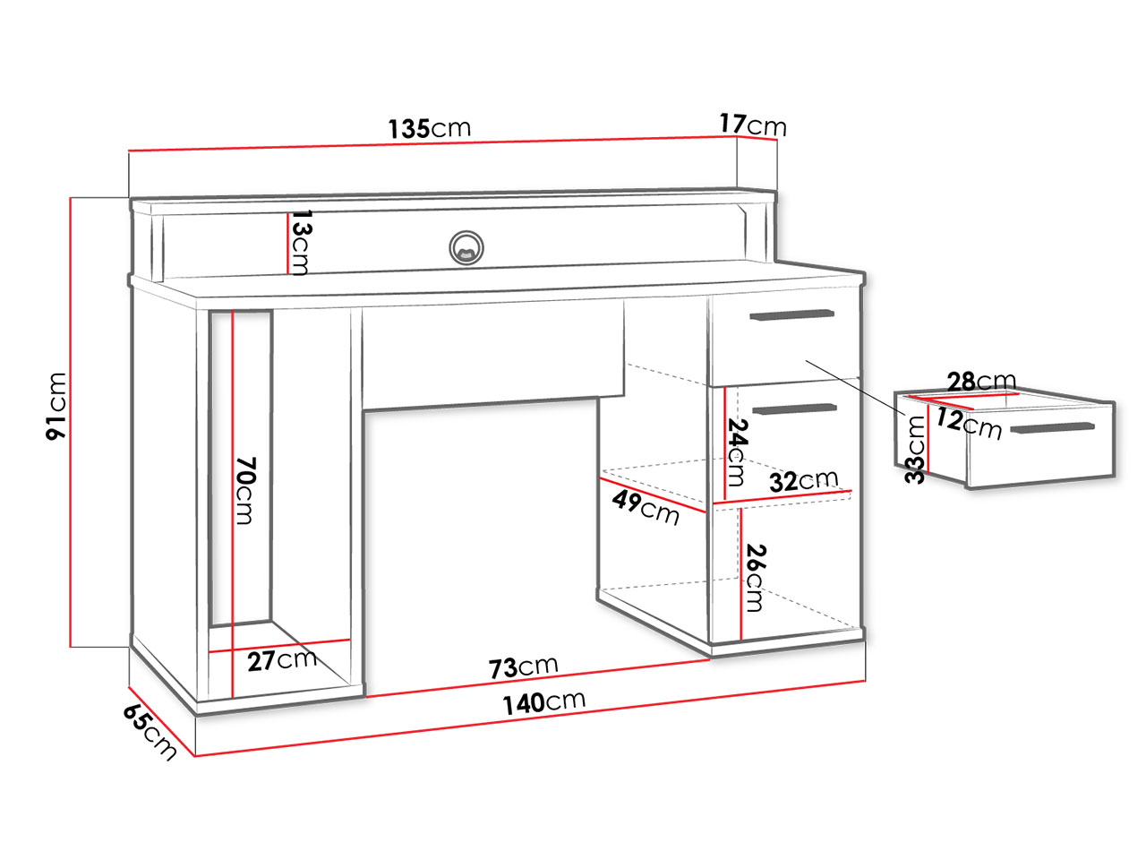 לשולחן הגיימינג יש מדף מופרד במיוחד למחשב, וכן מגירה וארון בהם ניתן לאחסן מוצרי אלקטרוניקה ואביזרים הנחוצים למשחק. הסט כולל תאורת LED + שלט רחוק.