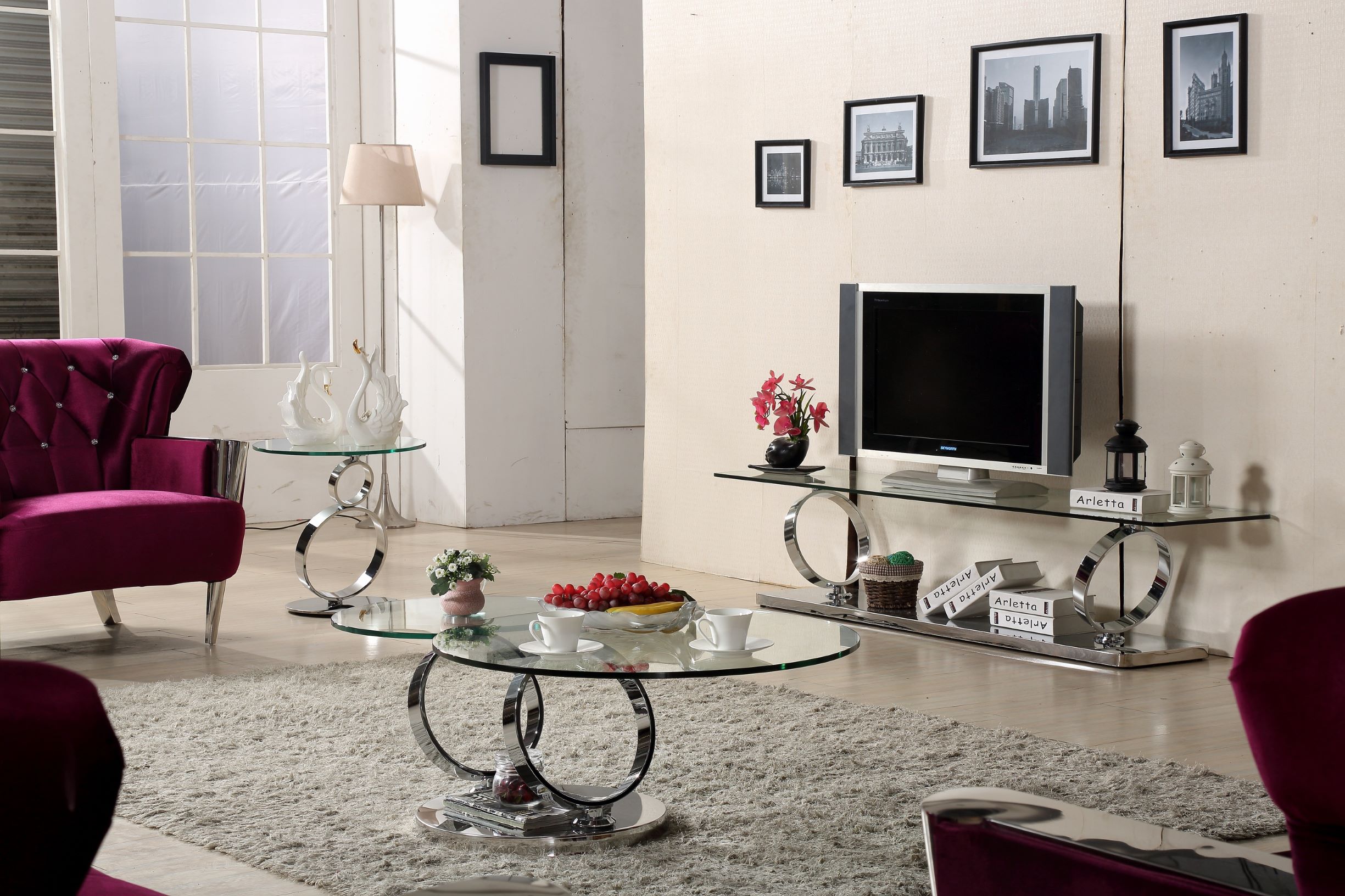 שולחן סלון 8857 בסיס נירוסטה זכוכית שקופה – שולחן מודרני