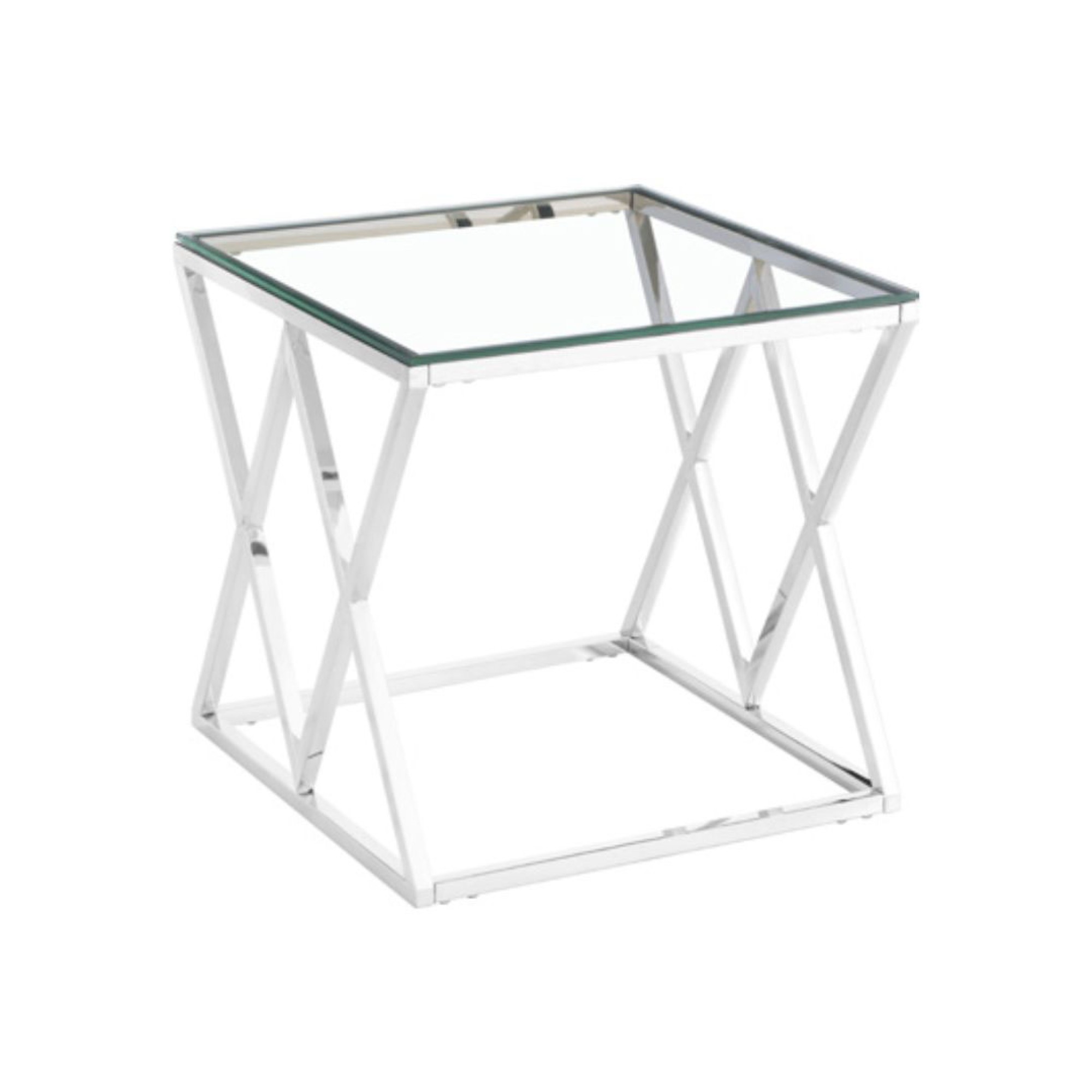✔️ עיצוב ייחודי: שולחן צד מרובע בעל עיצוב גיאומטרי מרשים, עם רגלי נירוסטה מוצלבות שמוסיפות סטייל מודרני ועכשווי 🌟