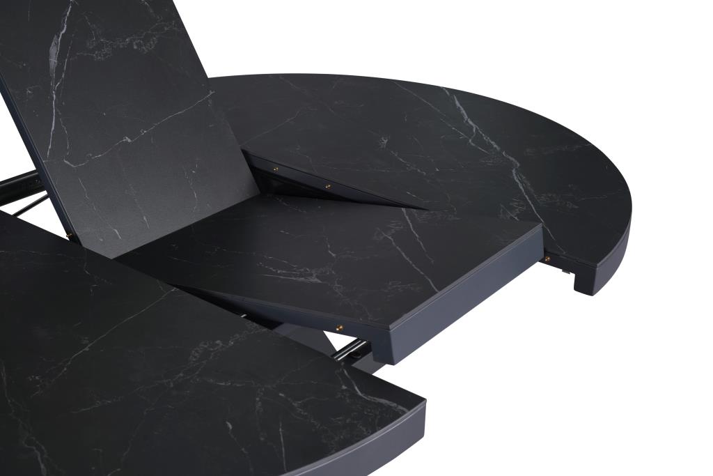 שולחן קרמי עגול SOLT מצויד במנגנון קיפול פרפר, המאפשר להגדיל את גודלו בקלות ובנוחות. הקרמיקה בעובי 6 מ"מ מודבקת על MDF, מעניקה לשולחן מראה מרהיב ועמידות יוצאת דופן. שלדת הפלדה השחורה האמינה והאלגנטית מבטיחה יציבות ובטיחות לאורך זמן.